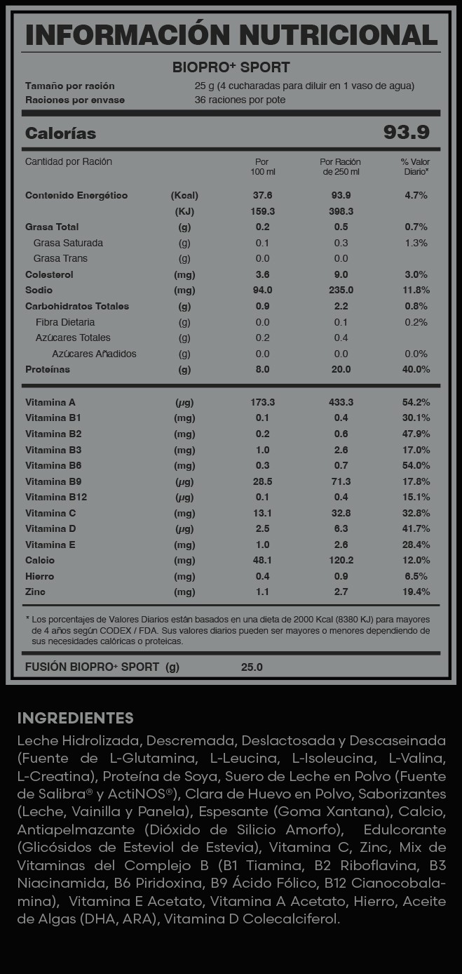 BIOPROTEIN+ CON COLOSTRUM® + ACTINOS® + AMINOÁCIDOS + CALCIO LÁCTEO + DHA Y ARA